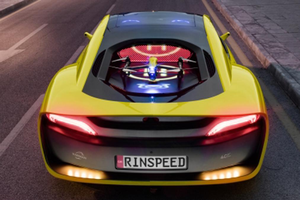 Ce nouveau prototype sera présenté lors du Consumer Electronics Show (CES) 2016, organisé en janvier à Las Vegas. Basée sur une BMW i8, sa particularité est d’embarquer une plateforme de décollage pour un drone. En fait, la lunette arrière de ce véhicule est réduite à sa plus simple expression pour laisser la place à une plate-forme matérialisée par un grand H permettant de faire décoller et atterrir des drones.